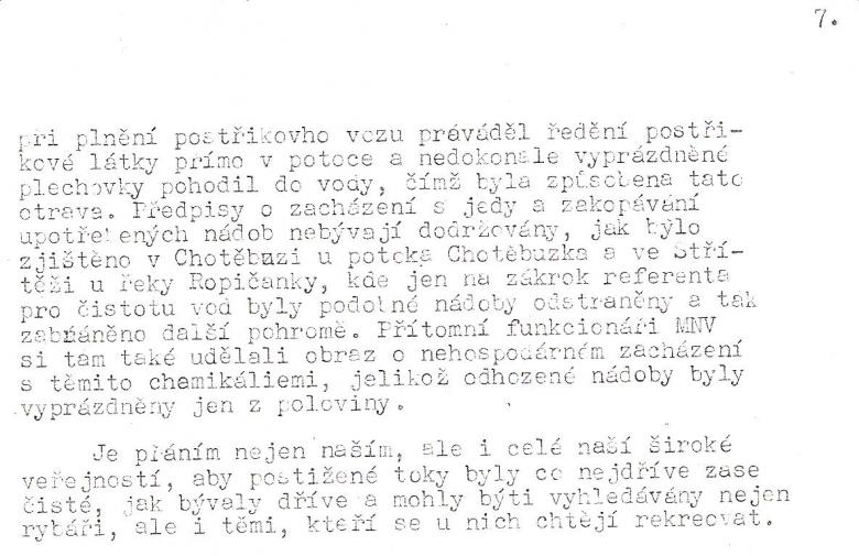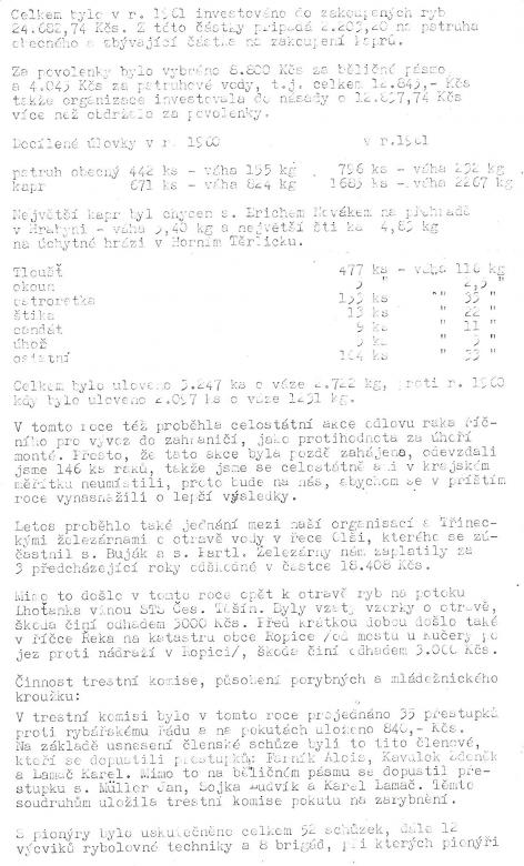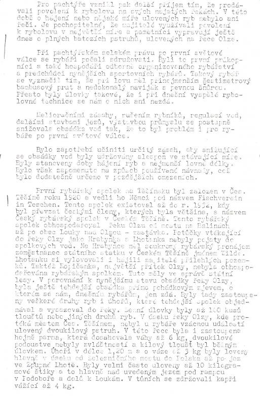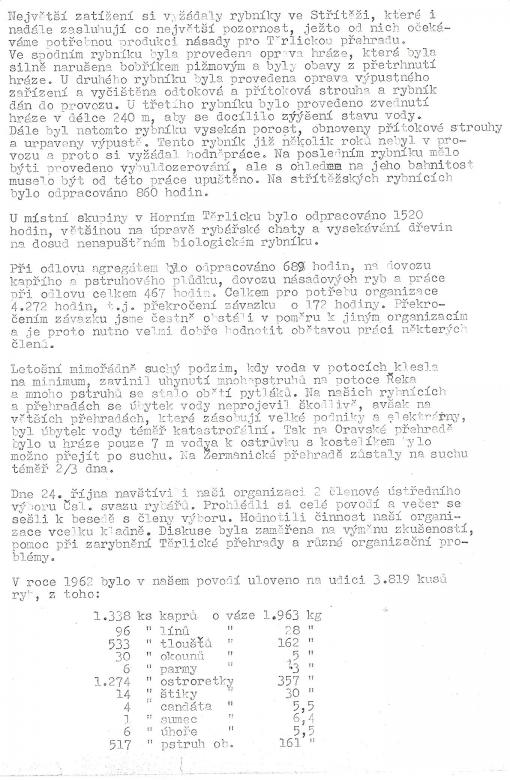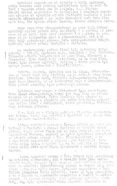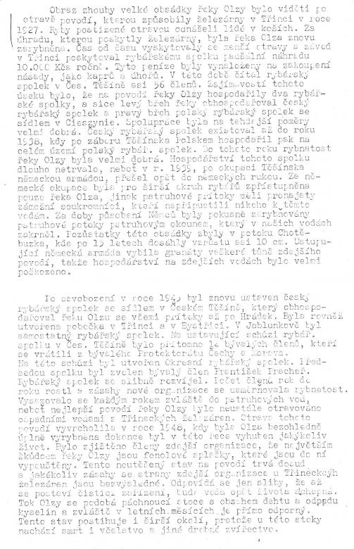 Nově ustavené organizace se sice snažily usměrňovat svou činnost do zvyšování zarybnění a čistoty vod, ale boj s průmyslovým znečištěním byl nerovný. Povodí Olše bylo neustále znečišťováno odpadními vodami z Třineckých železáren.