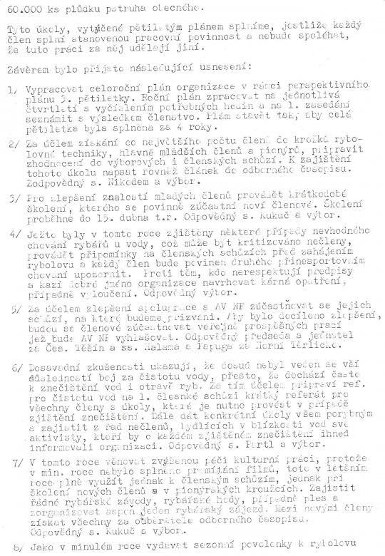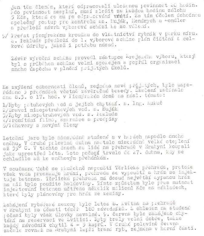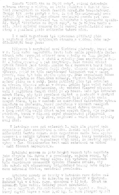 Éra místních spolků se uzavřela v roce 1957, kdy byla zřízena celostátní rybářská organizace – Československý svaz rybářů, do jehož struktur se místní organizace začlenily.