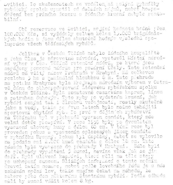 Navzdory neutěšenému stavu na Olši se rybáři nevzdávali. Jejich obětavost vedla k zakládání vlastních revírů. Lidový rybářský spolek v Českém Těšíně se rozhodl z vlastních prostředků a svépomocnými brigádami vybudovat rezervaci na starém říčním rameni ve Svibici (1,2 ha), kterou osadili lovným kaprem.