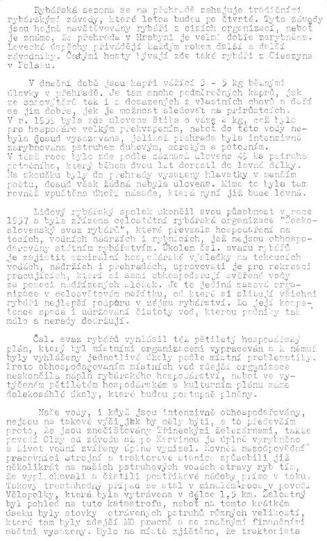 Vážení čtenáři těchto stránek. V roce 2010 naše MO ČRS Český Těšín dosáhlo významného jubilea a to 125. výročí vzniku rybářství na Těšínsku. Proto jsme se rozhodli, že Vám zpřístupníme Kroniku MO Český Těšín. Starší si zavzpomínají, mladší si rozšíří obzory.